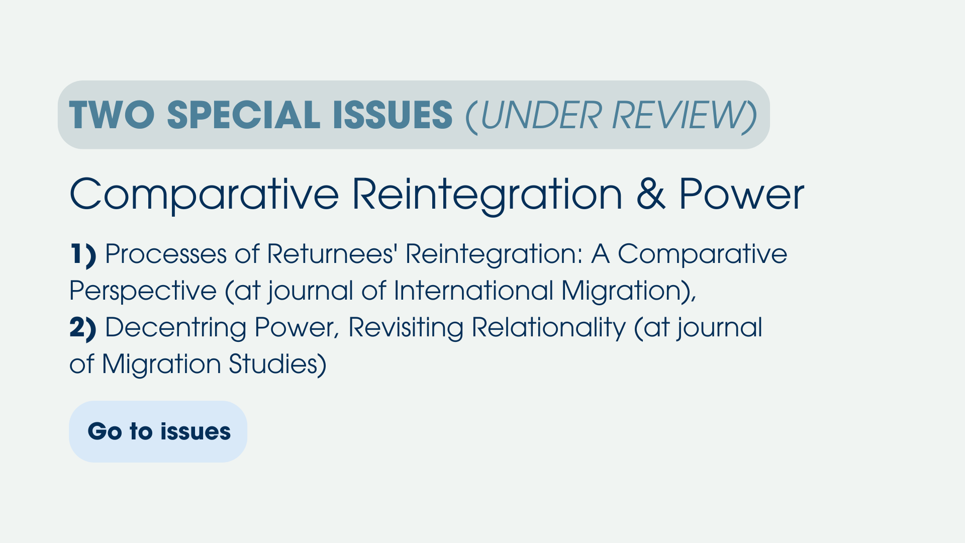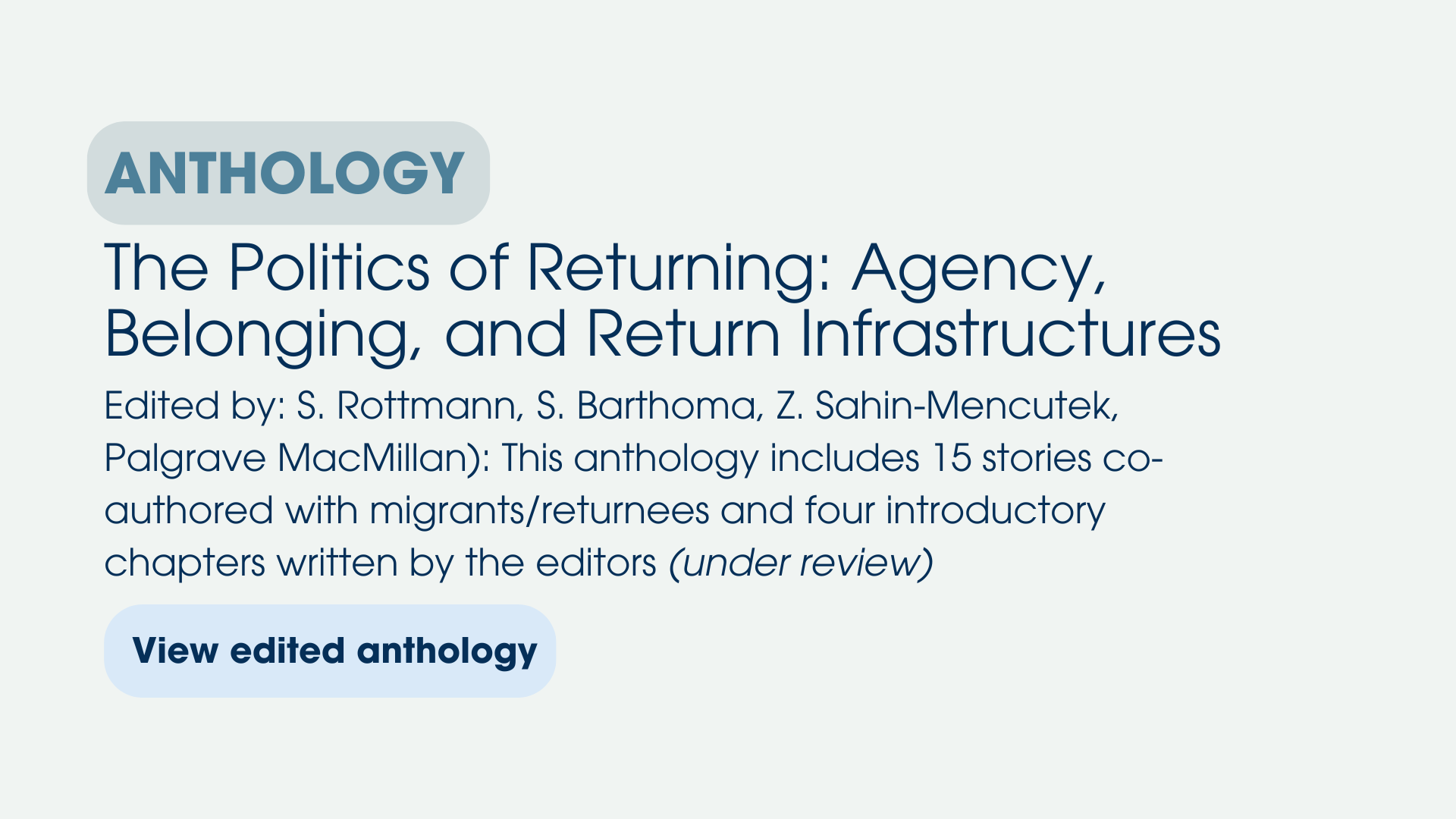 An inventory of promising return practices across 12 countries. It defines promising practices as those that actively promote migrants' rights, dignity, and agency while also contributing to effective and sustainable return governance. Eight recurring themes characterised these practices, including creating pathways out of precarious status, prioritising alternatives to detention, embedding multi-actor coordination, and delivering holistic and sustained reintegration support.