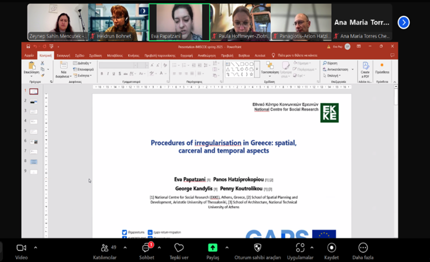From the GAPs project, Gerasimos Tsourapas, Samet Apaydın, and Zeynep Şahin Mencütek presented their research on “return diplomacy,” which applies Qualitative Comparative Analysis (QCA) to identify conditions leading to return agreements. Additionally, GAPs consortium members from EKKE—Eva Papatzani, Panos Hatziprokopiou, George Kandylis, and Penny Koutrolikou—examined how irregularization unfolds through various stages, from registration to reception and return policies, highlighting its spatial, temporal, and carceral effects on migrants.