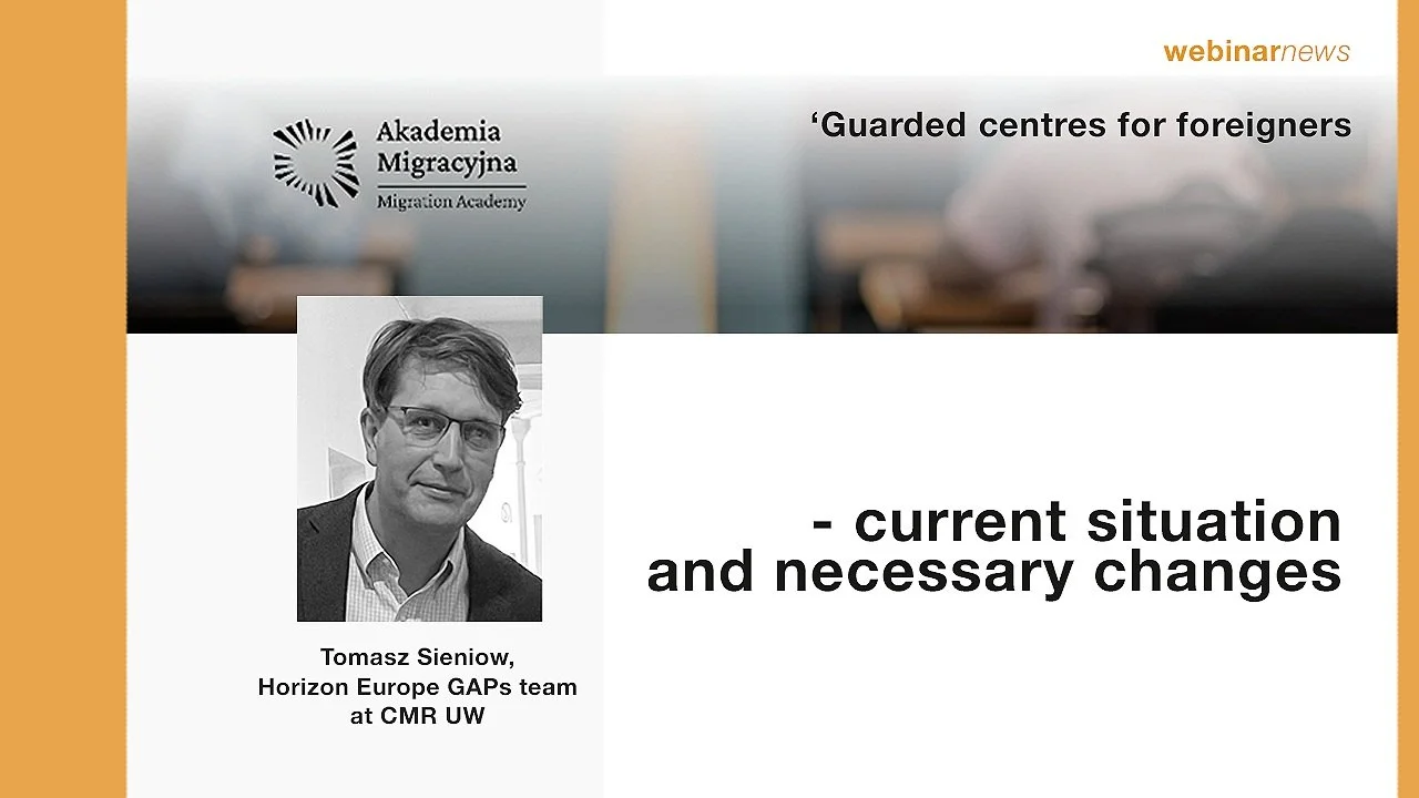 On May 16, 2024, Tomasz Sieniow from the Horizon Europe GAPs team at CMR UW participated as an expert in a webinar entitled ‘Guarded centres for foreigners - current situation and necessary changes’. The second expert in migration and refugee law was Ewa Ostaszewska-Żuk - a lawyer cooperating with the Helsinki Foundation for Human Rights. The meeting was moderated by Magdalena Nazimek-Rakoczy from the Migration Consortium.