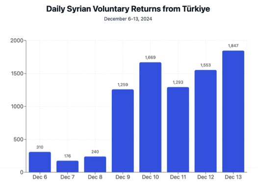 Figure 2: Daily number of Syrian returnees from Türkiye since the fall of Assad, Source: Official Statement of Minister of Interior
