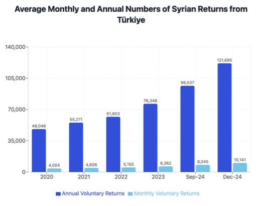 Figure 1: Average monthly and annual numbers of Syrian returnees from Türkiye, Source: AHaber (September 2024) & TBMM (December 2024)
