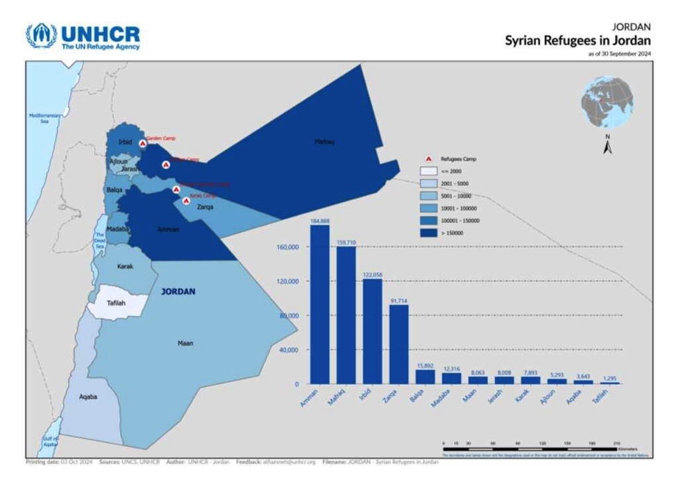 Syrian Refugees in Jordan - 30 September 2024. Source: UNCHR , Google Image : https://data.unhcr.org/en/documents/details/111581.