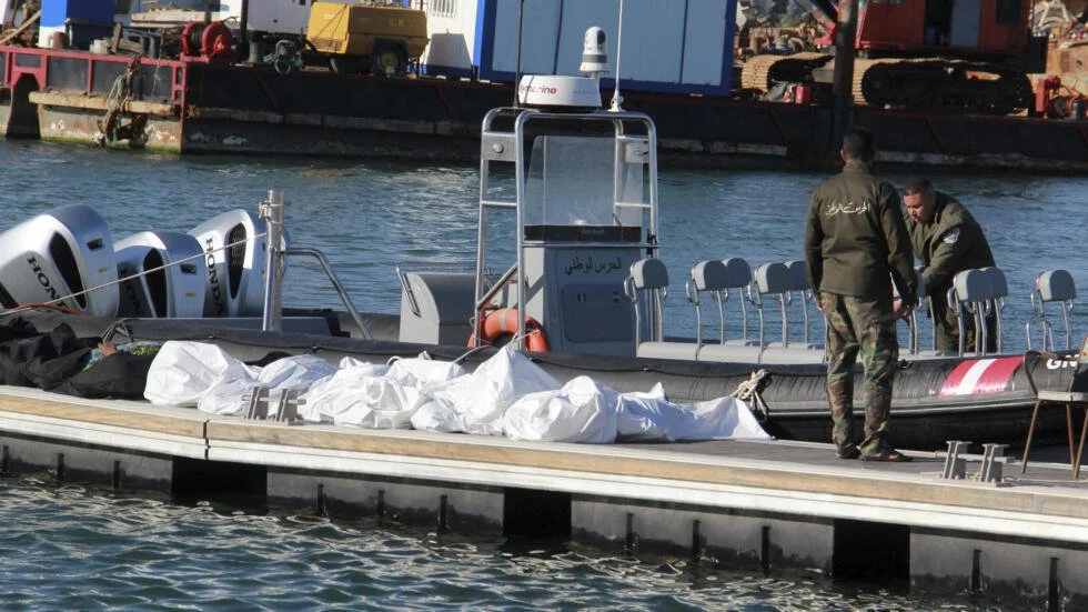 Tunisian coast guard members stand next to the dead bodies of migrants in the port of Sfax, Tunisia, Dec. 24, 2020 Source: www.rfi.fr/en/africa