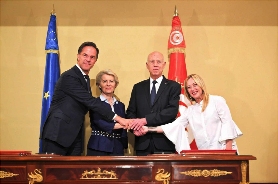 EuroNEWS From left: Mark Rutte, Ursula von der Leyen, Kais Saied and Giorgia Meloni at the signing of the EU-Tunisia Memorandum of Understanding, July 17, 2023. Source: www.euronews.com/my-europe